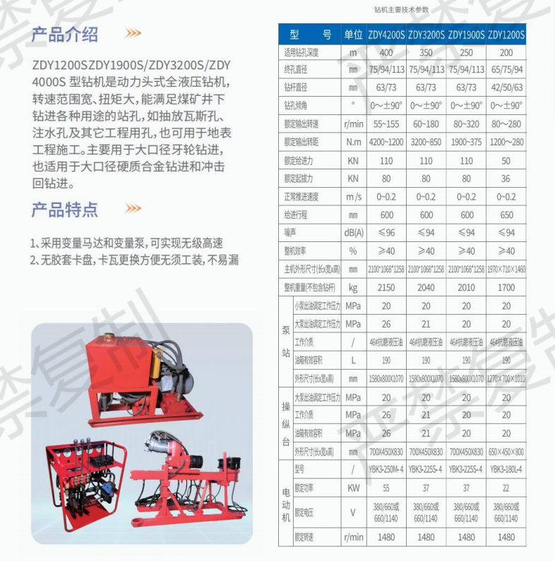 ZDY1200S、ZDY1900S、ZDY3200S、ZDY4200S煤礦用全液壓坑道鉆機(jī)