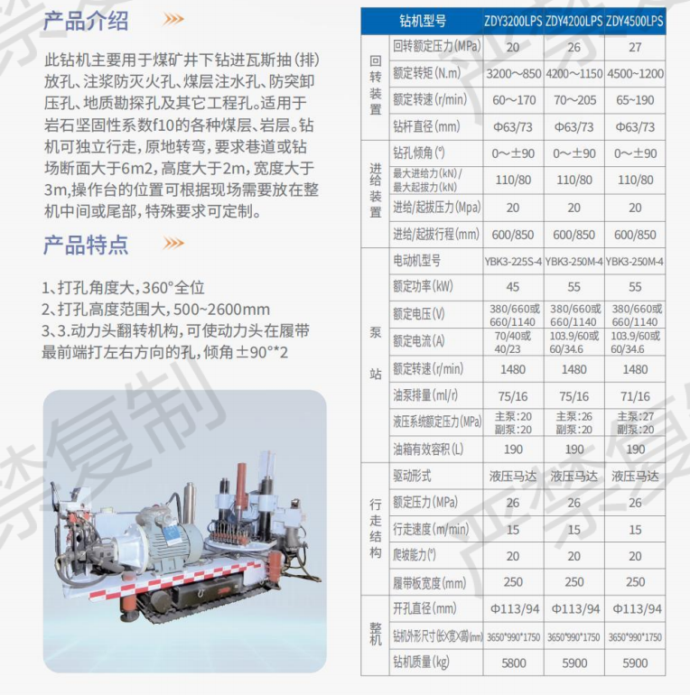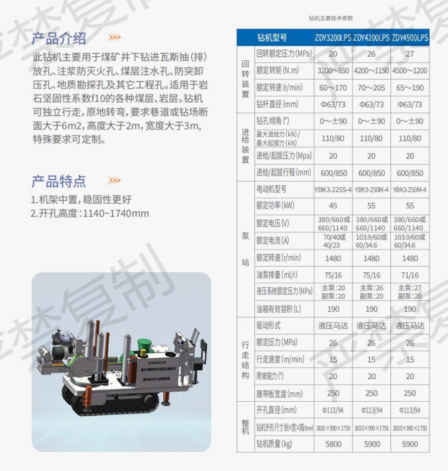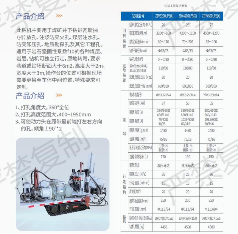 ZDY3200LPS/ZDY4200LPS/ZDY4500LPS 煤礦用履帶式全液壓坑道鉆機(jī)