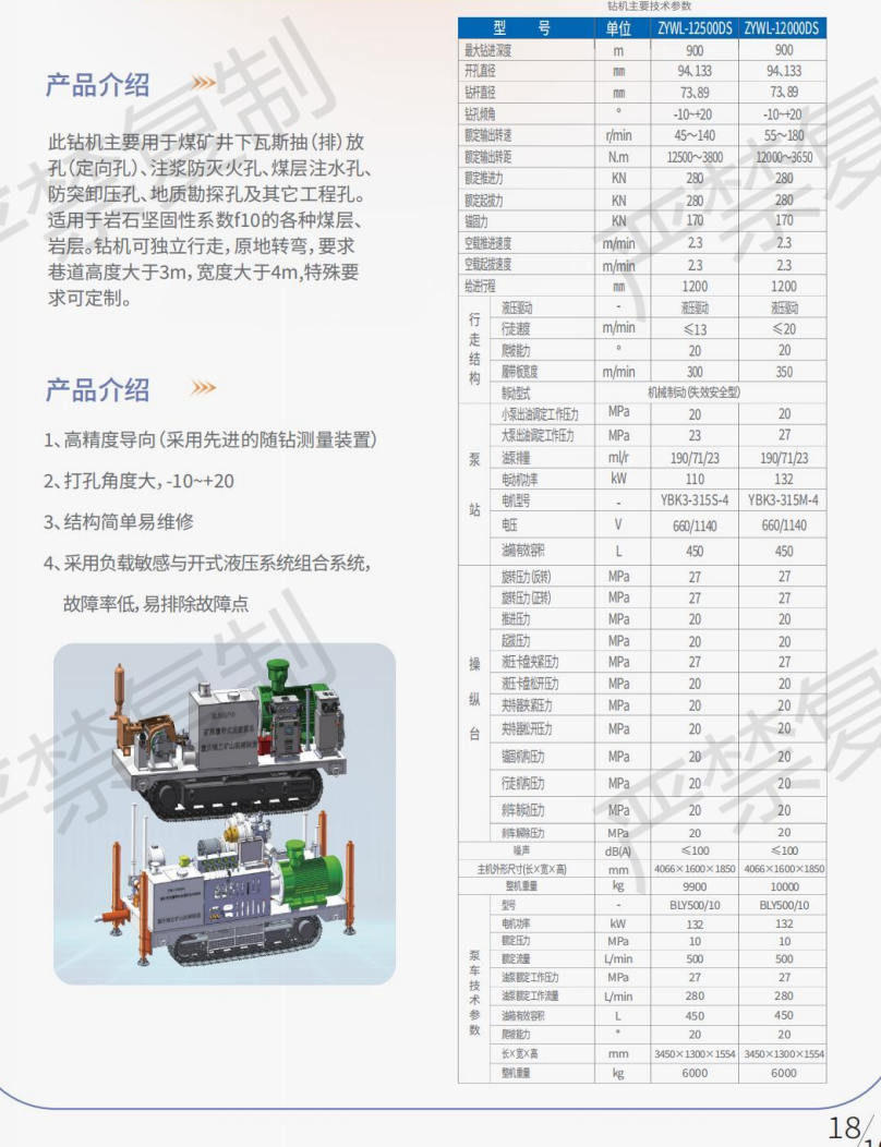ZYWL-12000DS/ZYWL-12500DS 煤礦用雙履帶式全液壓定向鉆機(jī)