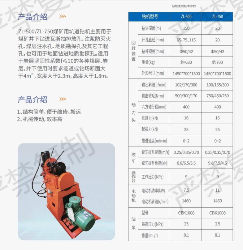 ZL-500/ZL-750 煤礦用履帶式全液壓坑道鉆機(jī)