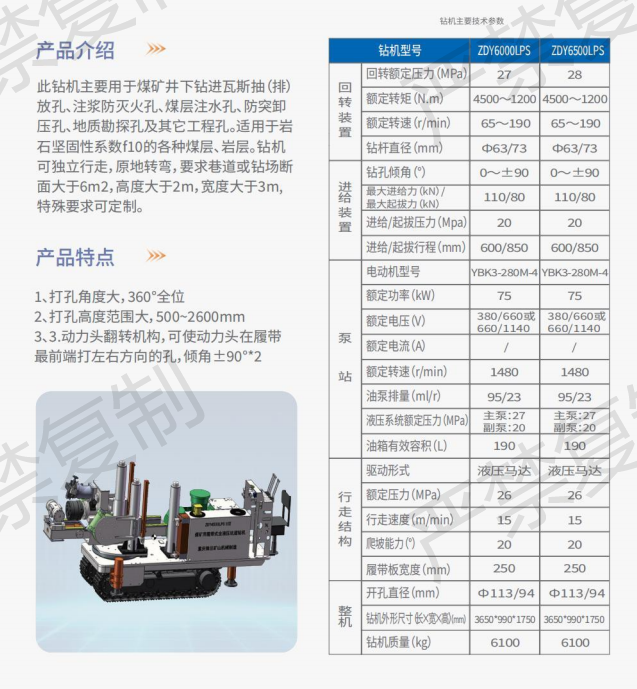 ZDY6000LPS/ZDY6500LPS/ZDY8000LPS 煤礦用履帶式全液壓坑道鉆機(jī)