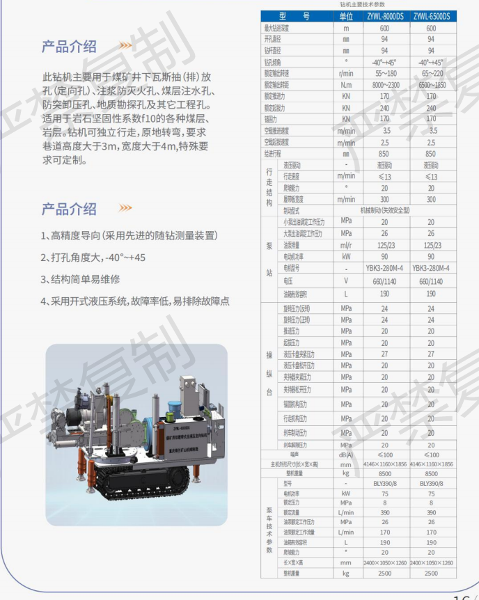 ZYWL-8000DS/ZYWL-6500DS 煤礦用雙履帶式全液壓定向鉆機(jī)